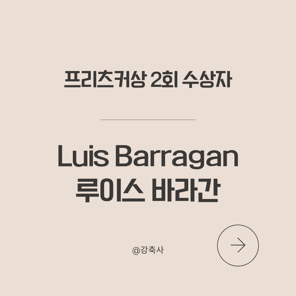 안녕하세요 강축사입니다 :-) 오늘 소개할 프리츠커상 수상자는제2회(1980년) 프리츠커상 수상자 "루이스 바라간(Luis Barragán)" 입니다. "건축은 조형의 문제가 아니라, 빛과 그림자, 벽과 공간, 그리고 인간의 감각이 만들어내는 조화다.""나는 아름다움을 설계한다. 아름다움은 인간의 마음을 움직이는 건축의 본질이다."루이스 바라간은 감성과 색채가 어우러진 건축을 구현한 거장입니다. 단순한 형태와 강렬한 색채, 그리고 빛과 물을 활용한 공간 연출이 그의 건축을 독창적으로 만들었습니다. 그는 전통적인 멕시코 건축 요소를 현대적으로 해석하여, 감성적이면서도 기능적인 건축을 완성했죠. 그의 작품은 건축적 논리를 넘어, 직관적으로 느껴지는 아름다움과 평온함을 강조합니다. - 루이스 바라간의 건축..